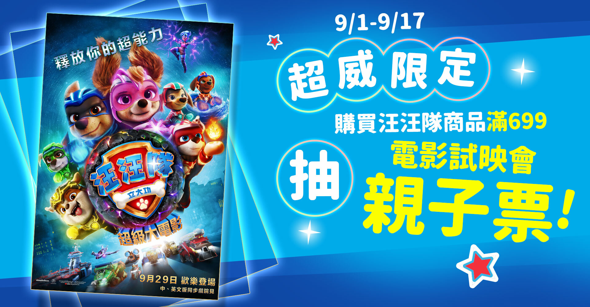 📌購買汪汪隊系列商品滿699抽汪汪隊試映會親子票(2張)