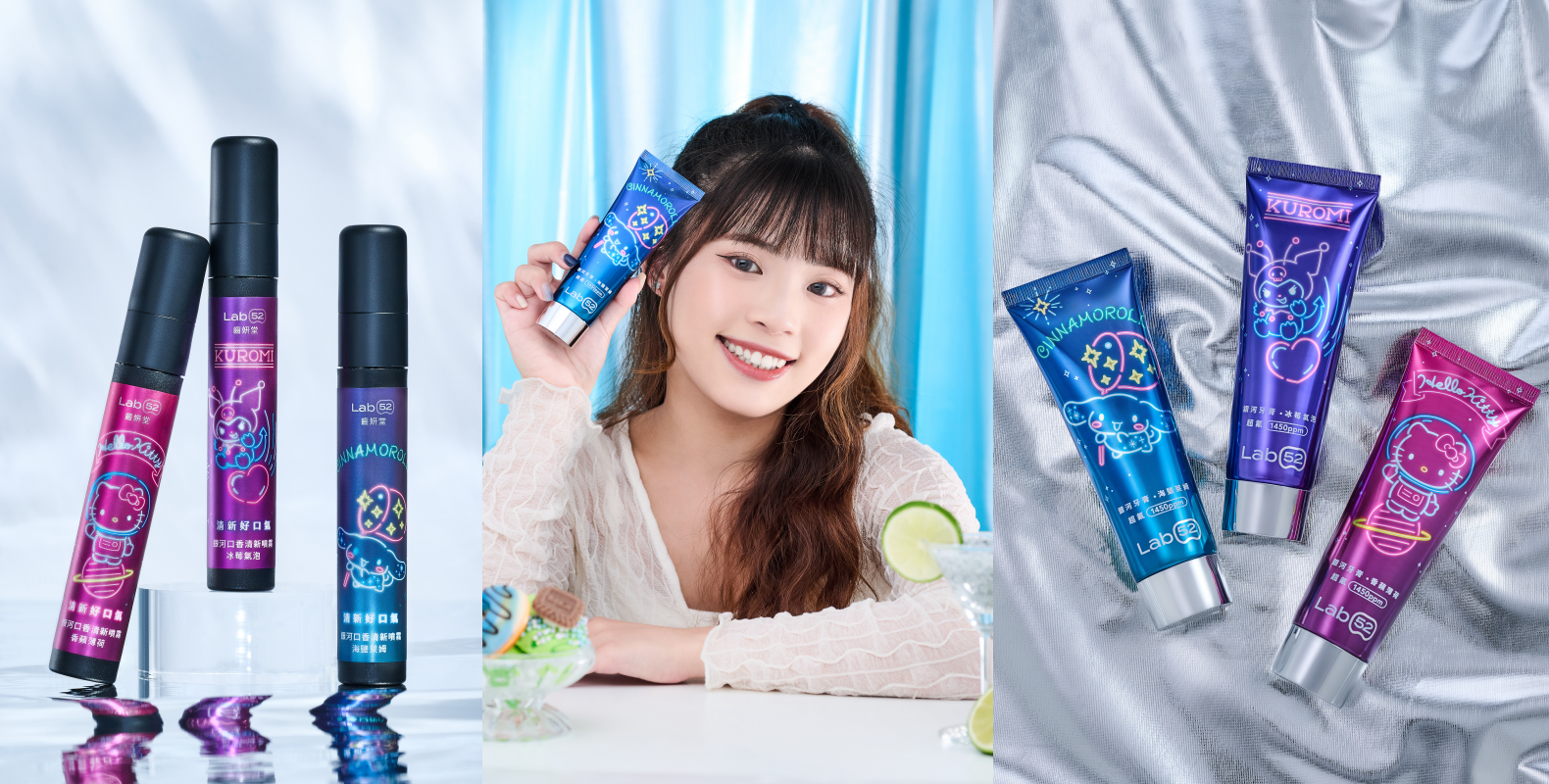 有誰和漂亮編一樣是三麗鷗忠實粉絲呢?喜愛各種角色的你又有全新限定款可以入手啦!知名牙齒美白品牌Lab52齒妍堂推出可愛又時尚的三麗鷗銀河系列 ,人氣角色搭配閃亮的包裝看來又要造成一波搶購啦~正在查詢要買哪幾款才好時,直接被眾多網美開箱Lab52齒妍堂銀河牙膏的照片打到,可愛到想全包呀!這次推出Hello Kitty、酷洛米和大耳狗三款包裝,不同顏色的牙膏體更是承載「銀河星鑽粒子」(名字有夠酷炫!),刷牙時就像「擠出一條銀河」讓人少女心爆發,宛如漂浮在星空的夢幻高顏值牙膏,還能想像和人氣角色漫遊宇宙的共度刷牙時光。