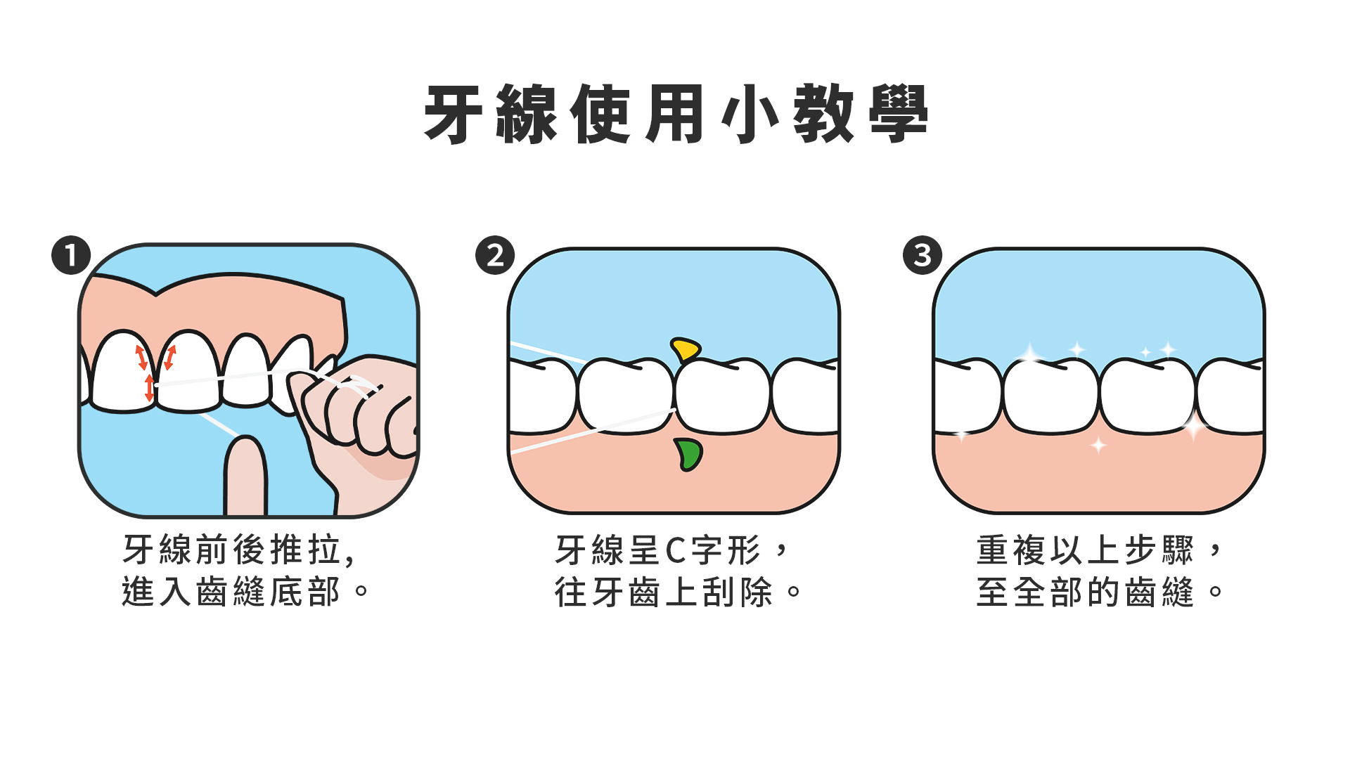 醫師也發現其實很多人不會使用牙線/牙線棒,在此做一個簡單的小教學: