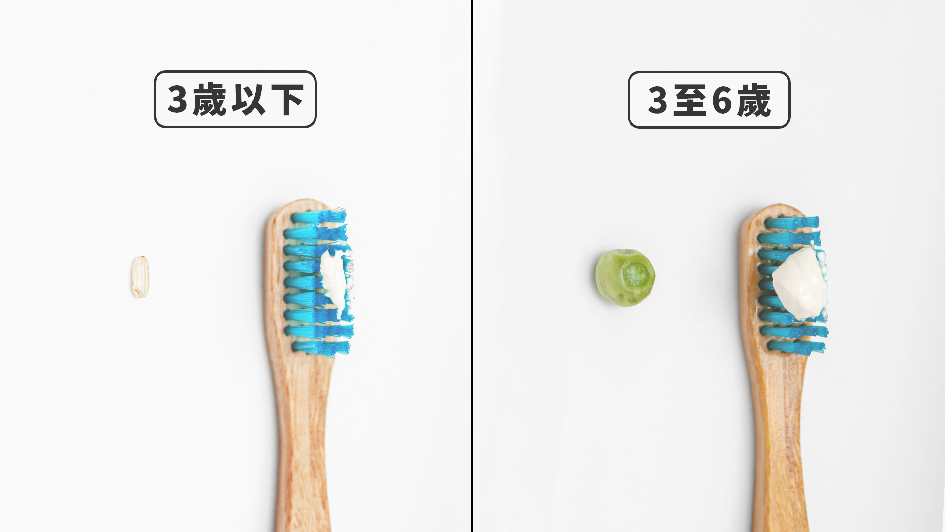 2018年美國兒童牙醫學會發行的「兒童使用氟化物臨床指引」明確指出,當兒童第一顆牙齒萌出時(約出生後6個月),可以開始嘗試使用高於1,000 ppm的含氟牙膏刷牙,但是3 歲以下的幼童,每次應該使用少於一顆米粒大小的牙膏量;3-6歲的兒童,每次應該使用少於一顆豌豆大小的牙膏量,而且全程要有照護者的協助與督導。
