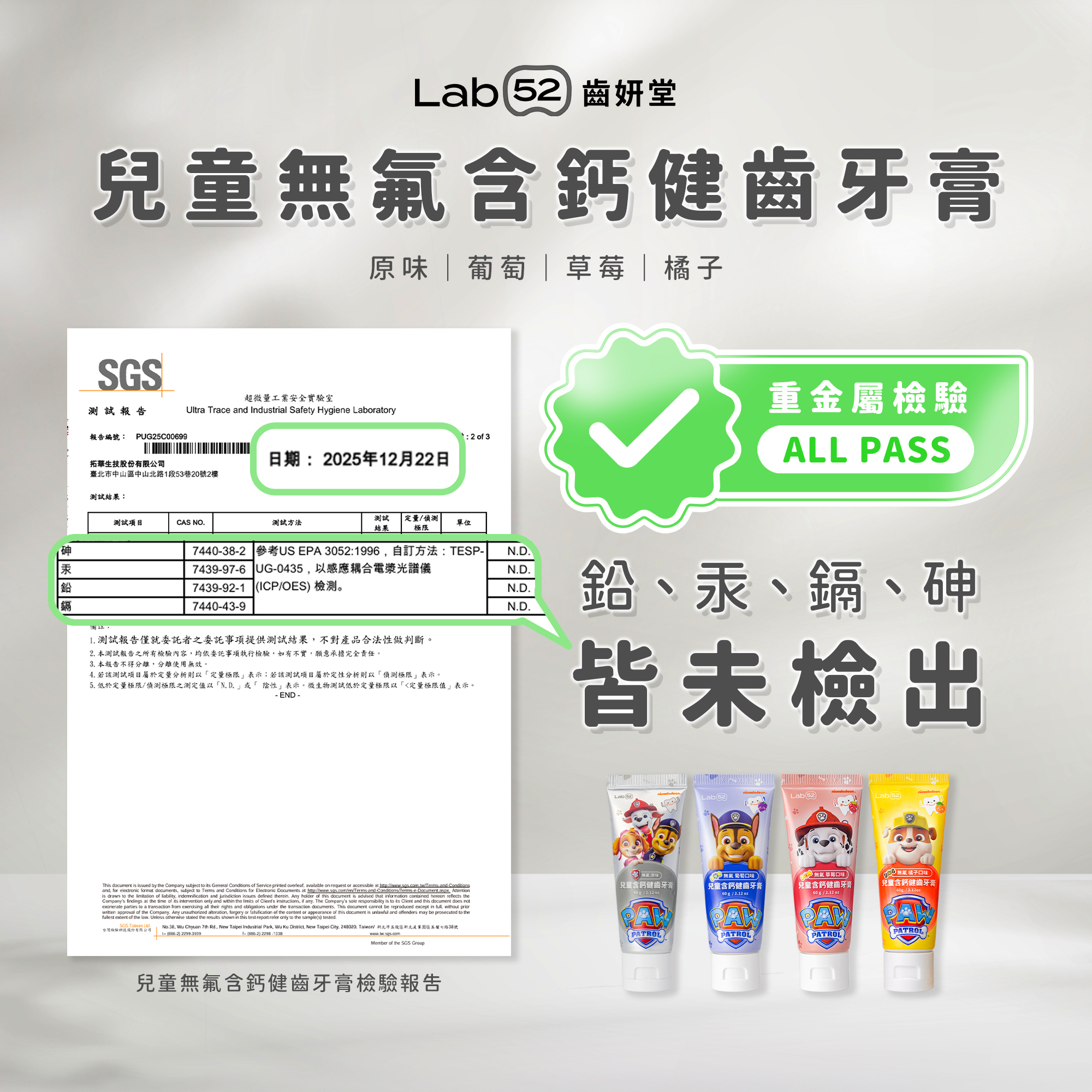 ✅ 兒童無氟含鈣健齒牙膏|重金屬「未檢出」