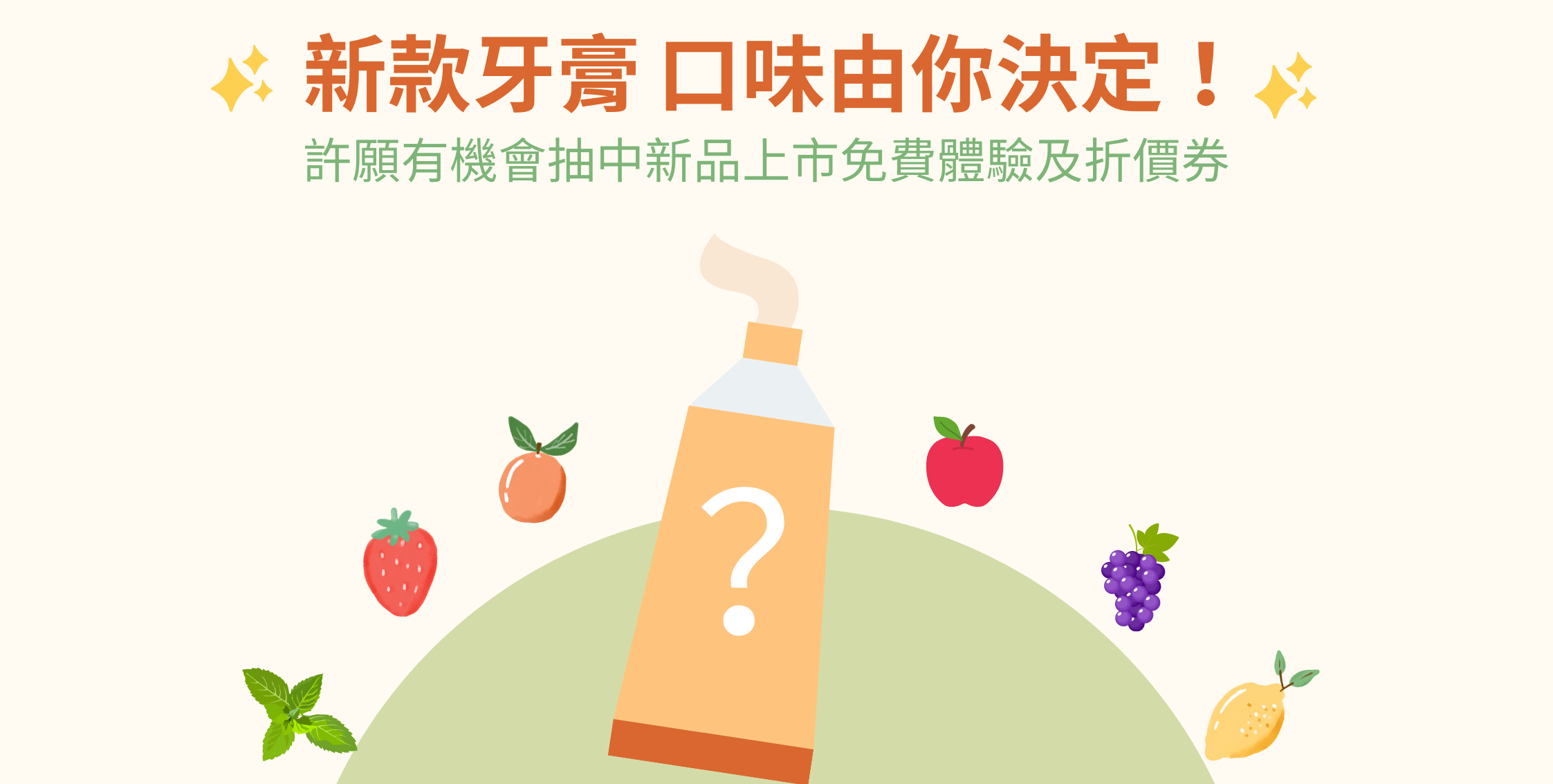 我們即將上市一款齒妍堂「益生菌牙膏」,邀您共同參與,票選您及寶貝最希望的牙膏口味!