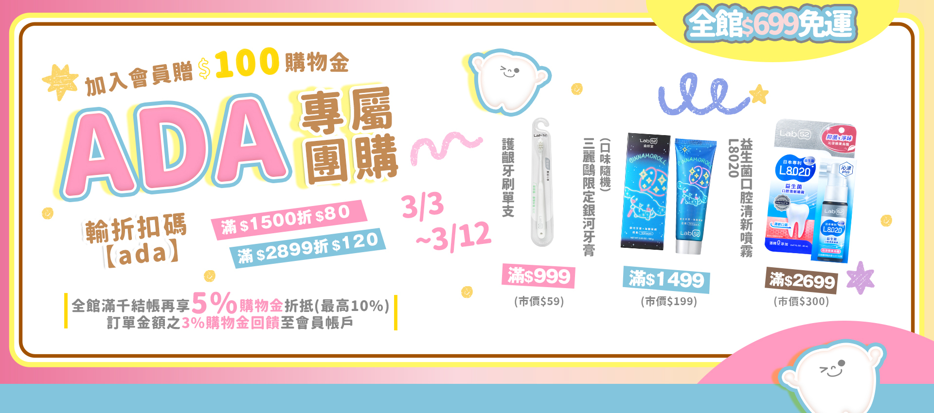 滿$999送雲朵護齦牙刷單支(市價$59)