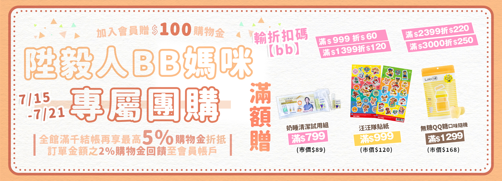 陞毅人BB媽咪 專屬團購 7/15-7/21