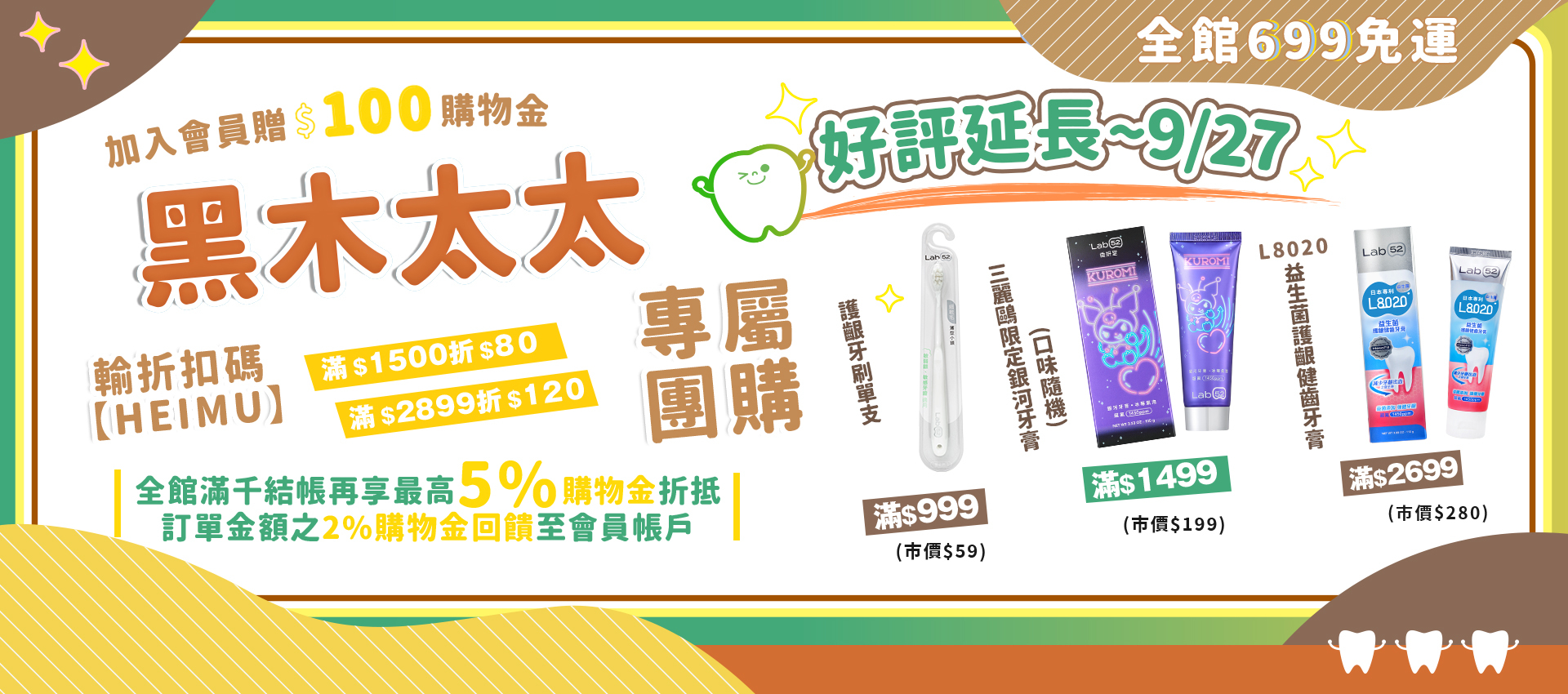 滿$999送雲朵護齦牙刷單支(市價$59)