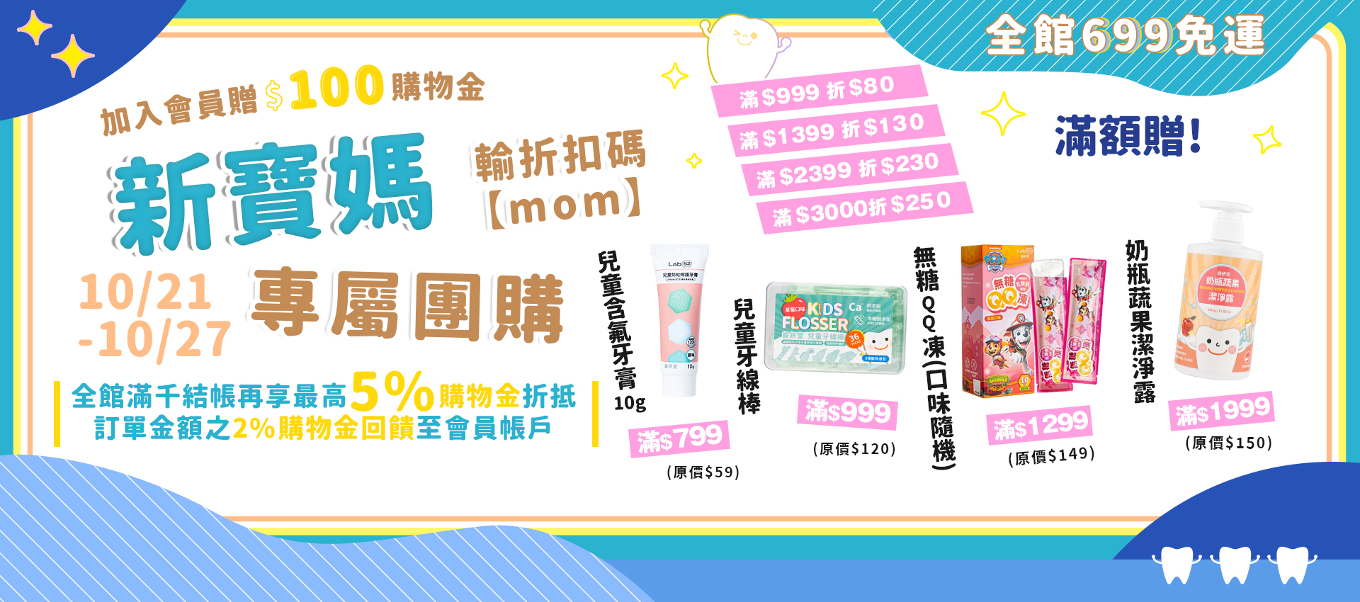 滿$799送兒童含氟牙膏10g(口味隨機)