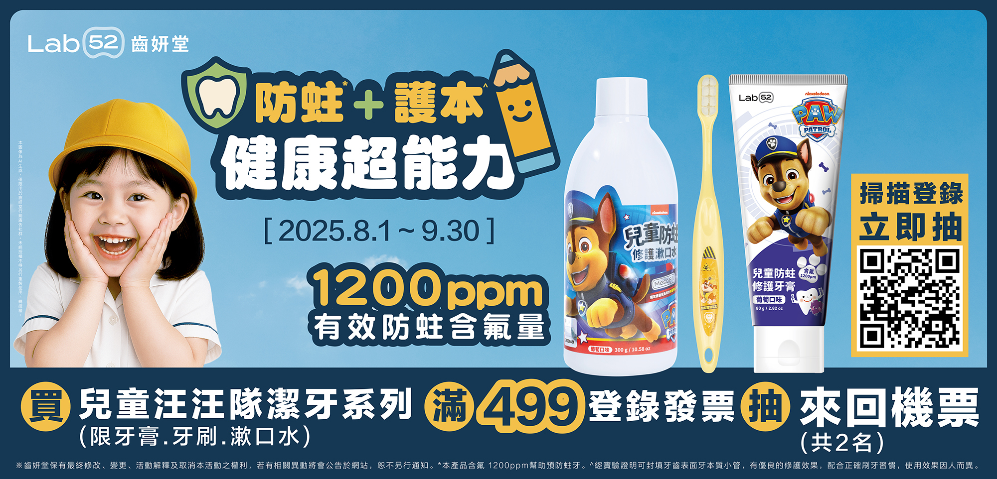 🛒2025/8/1-9/30凡購買齒妍堂汪汪隊潔牙系列商品滿$499(*限牙膏/牙刷/漱口水),至官方LINE帳號登錄發票,即可參加抽獎 。