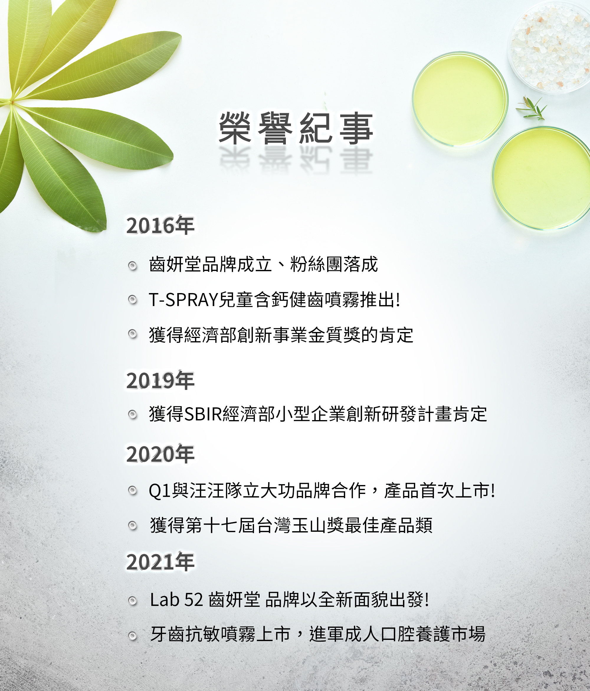 我們也希望在海外品牌主導的口腔養護市場上,創造出屬於台灣的驕傲。我們的產品都是台灣自有研發團隊打造,經過深入地技術研究與不斷地產品嘗試,務求最優質的使用體驗。基於這樣創新研發的實驗室精神,我們將服務人群從兒童拓展到了全年齡段,開創了「齒妍堂Lab 52」口腔養護品牌。