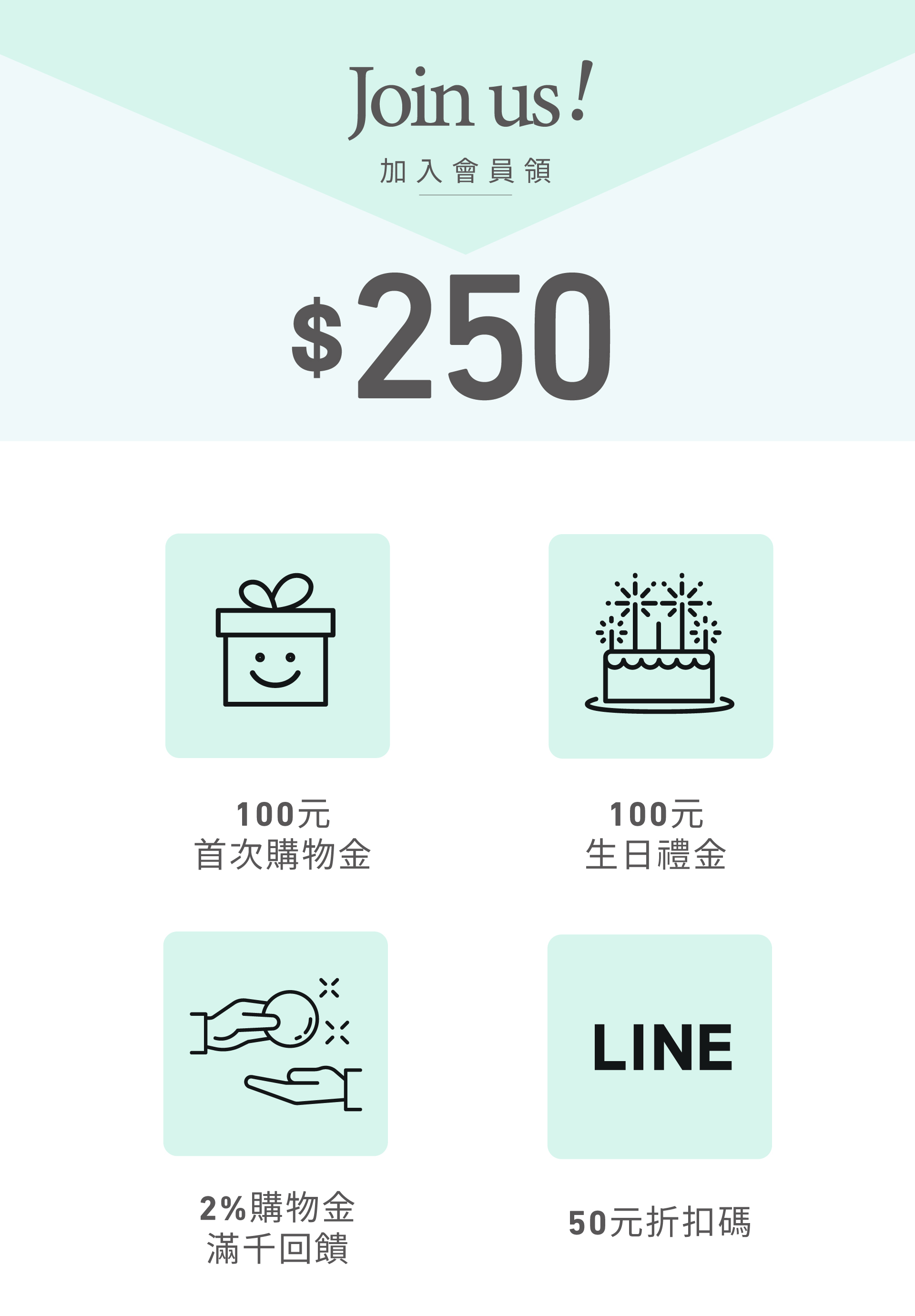 (1) 凡加入會員購物皆可累計點數,每消費NT$100即可獲得1點;點數將於每次購物後,該筆訂單的訂單狀態轉為『已完成』時獲得點數。