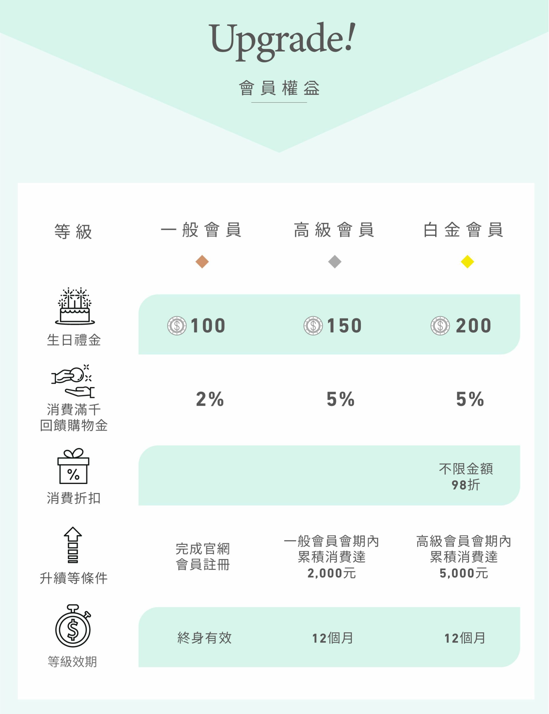 升級:會期內累積消費滿額,且訂單轉為已付款,依每日系統排程升等。